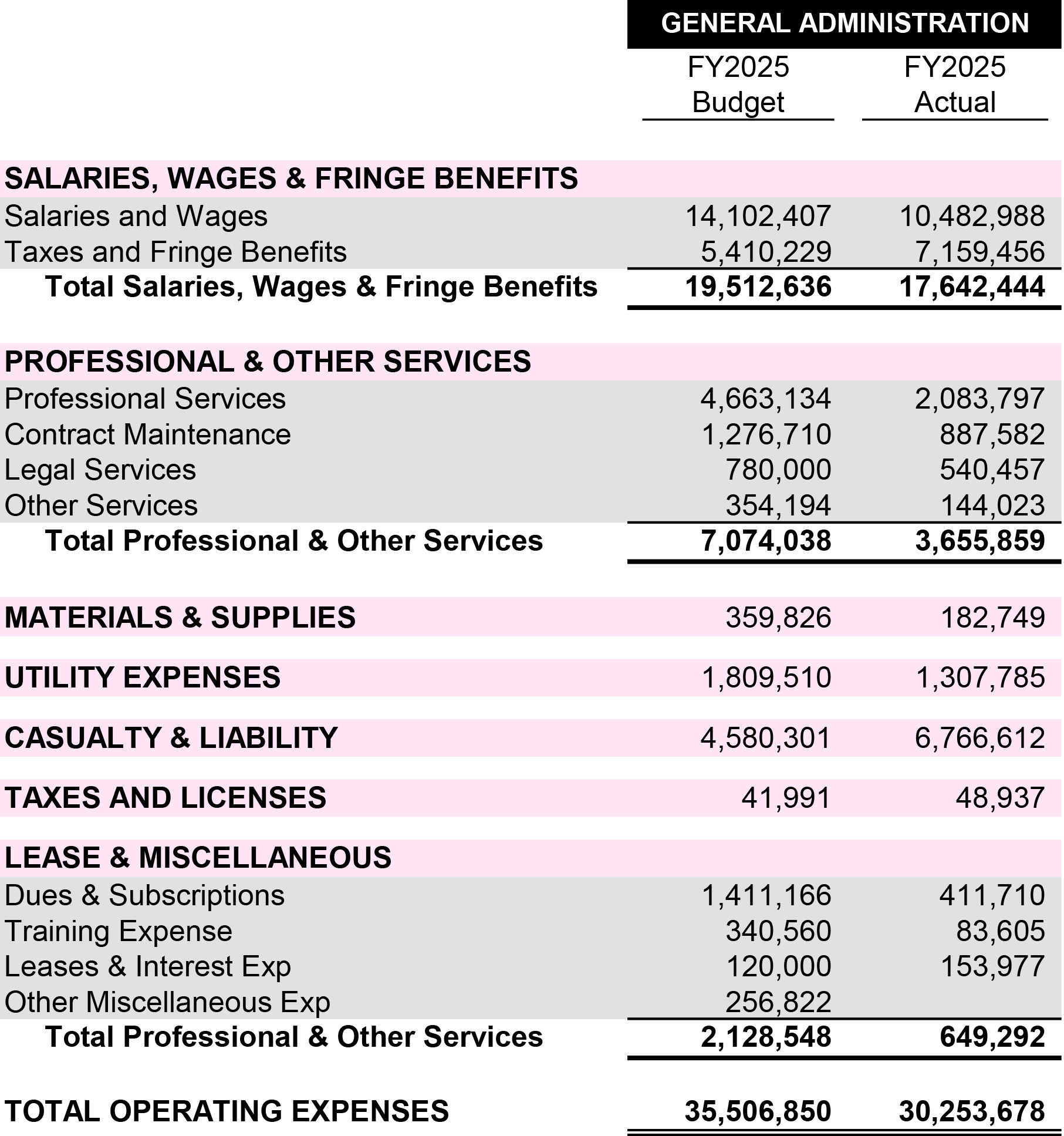 - To report on the line-item budget report of its budgeted and actual general administrative costs for the previous Fiscal Year.