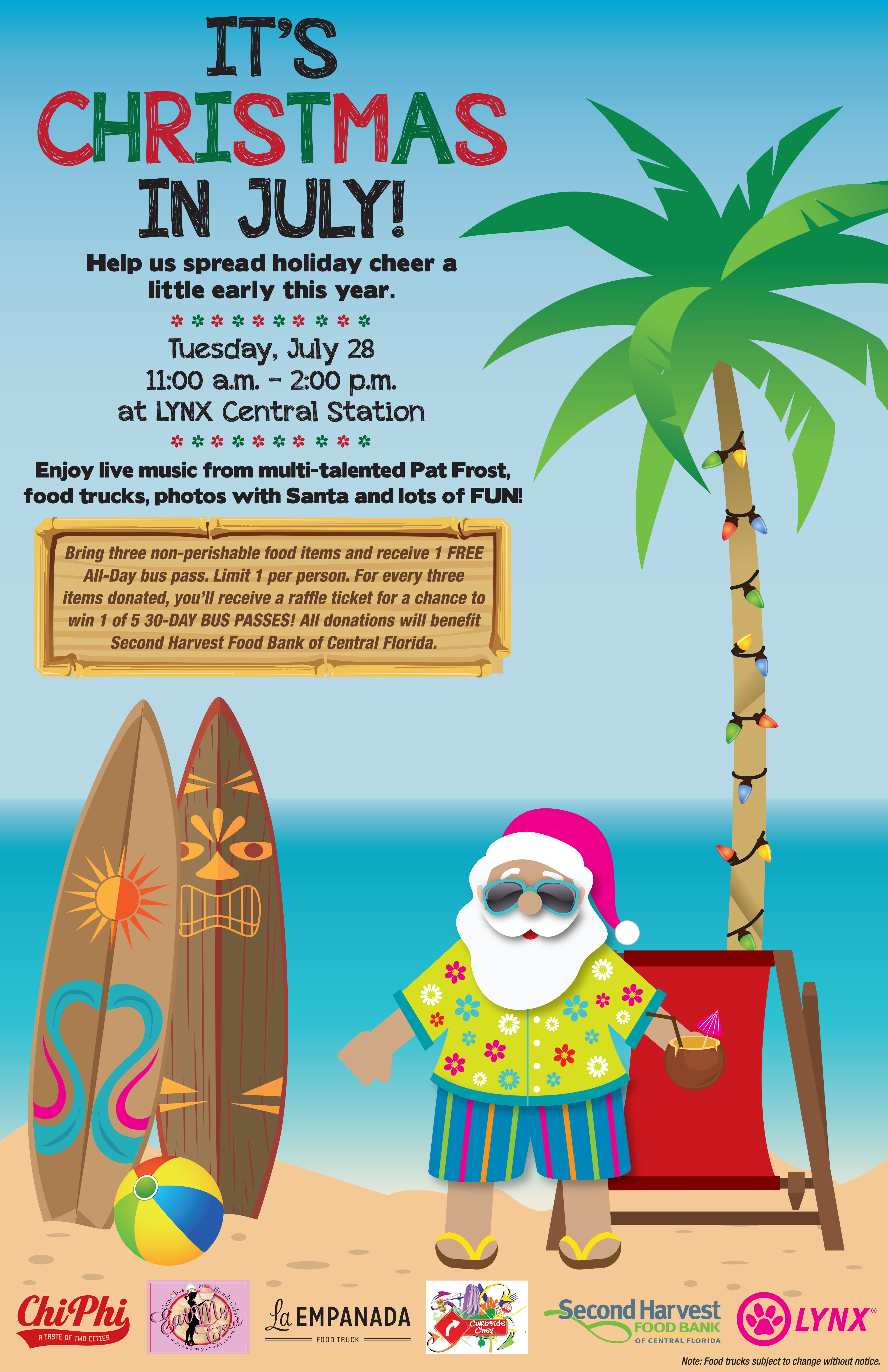 This July, help us give back during our Christmas in July event. Come celebrate on July 28 at LYNX Central Station! This fun event will feature live music, food trucks and even Santa!