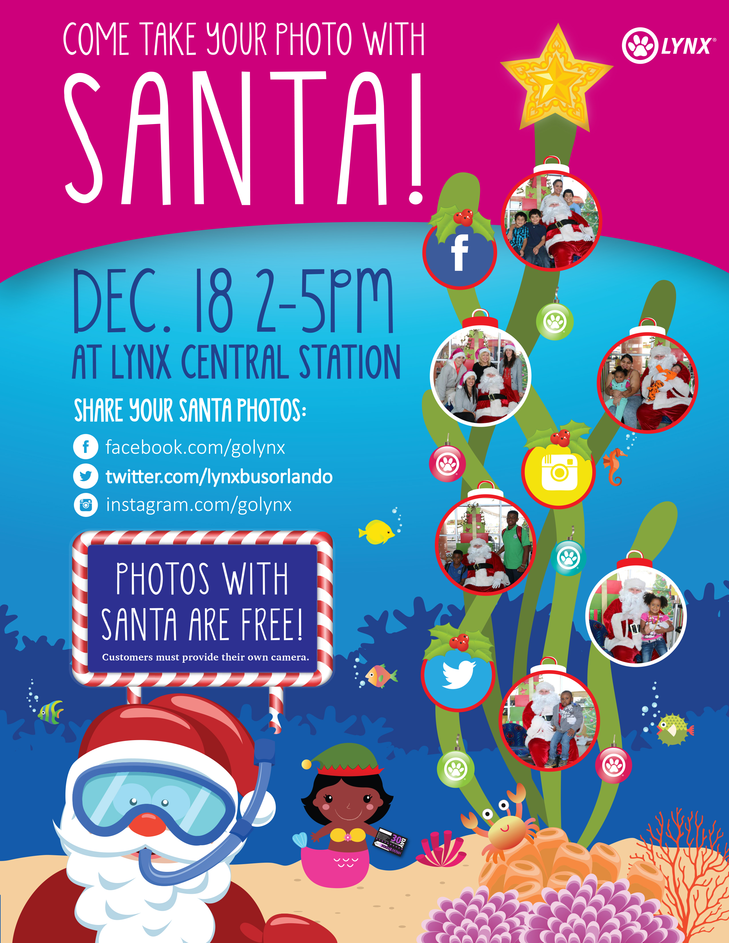 Santa will stop driving for one afternoon and take photos with all of the “nice” Central Florida boys and girls in the LYNX Central Station Terminal 2 - 5 p.m. Dec. 18.